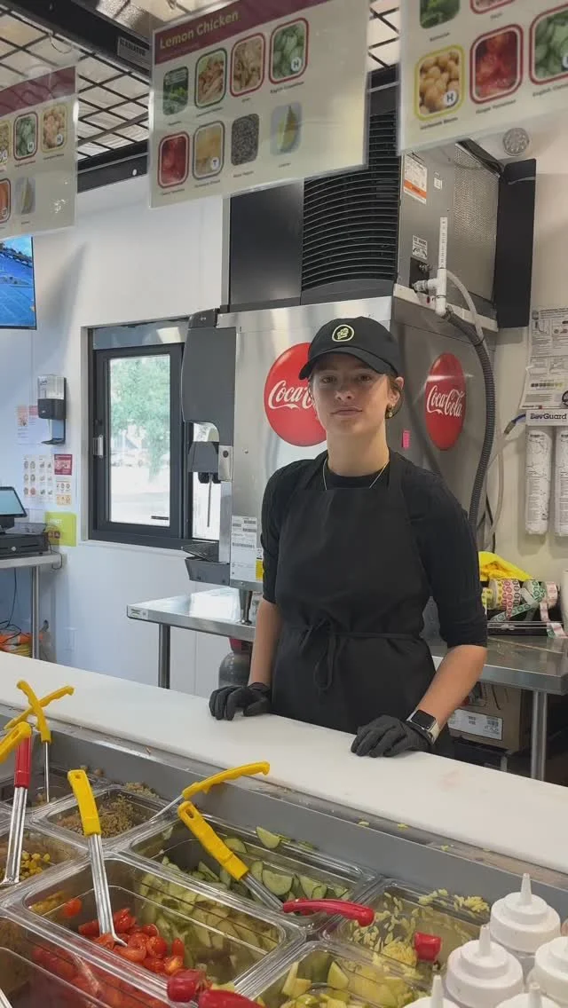 Romaine, Seasoned Chicken, English Cucumbers, Cotija Cheese, Fire Roasted Corn, Pimento Peppers, Cashews, Pepper, Chives, side of Honey Mustard Dressing (350 cal)