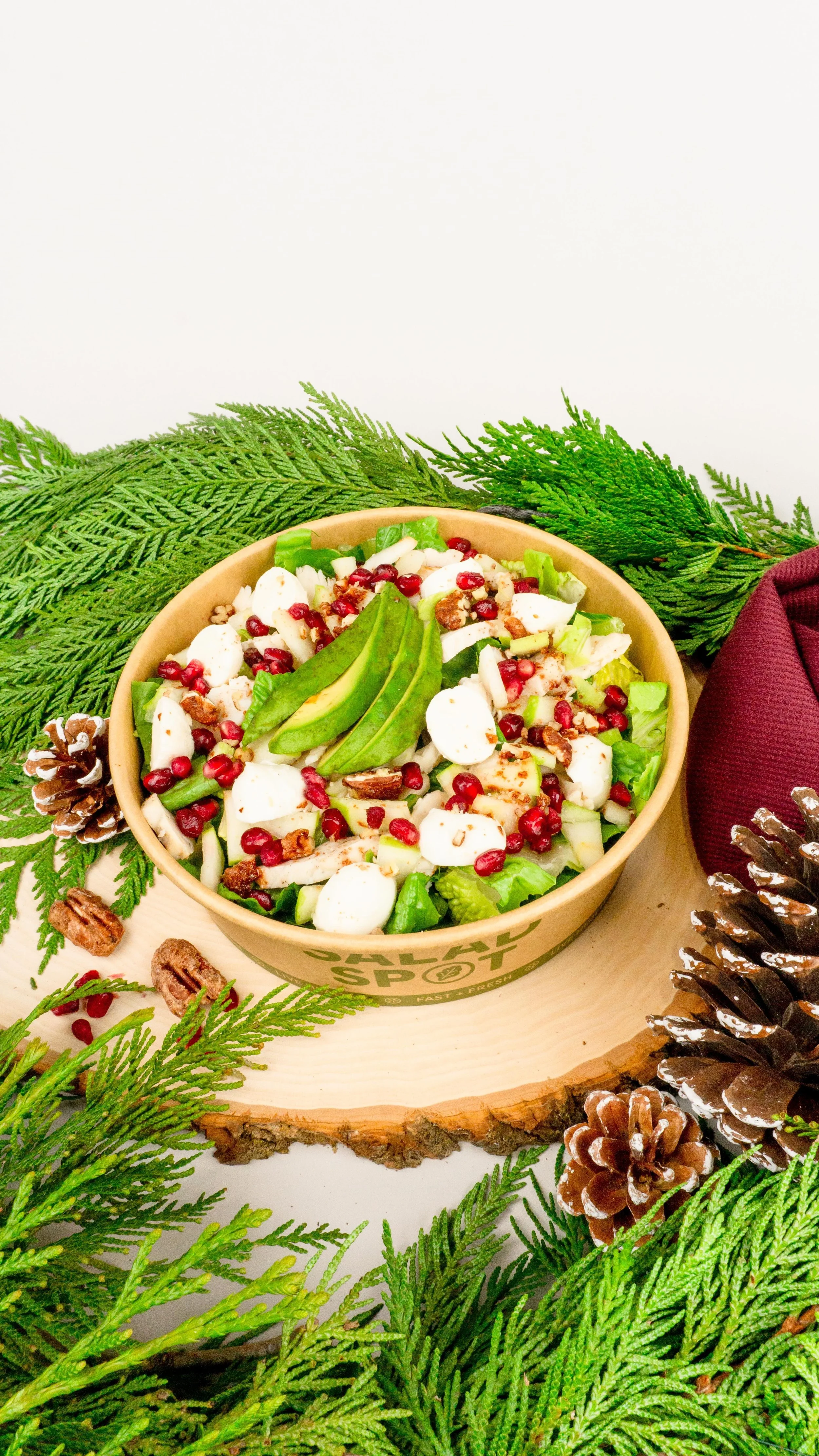 NEW Butter Leaf Blend, Smoked Chicken, Quinoa, Swiss Cheese, Granny Smith Apples, Craisins, Bacon, Candied Walnuts, Apple Cider Vinaigrette (300 calories)